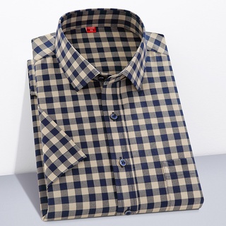 Summer Casual Small Plaid Cotton Short Sleeve Man Shirt Slim Fit Socail Men Dress Shirt Shopee Malaysia