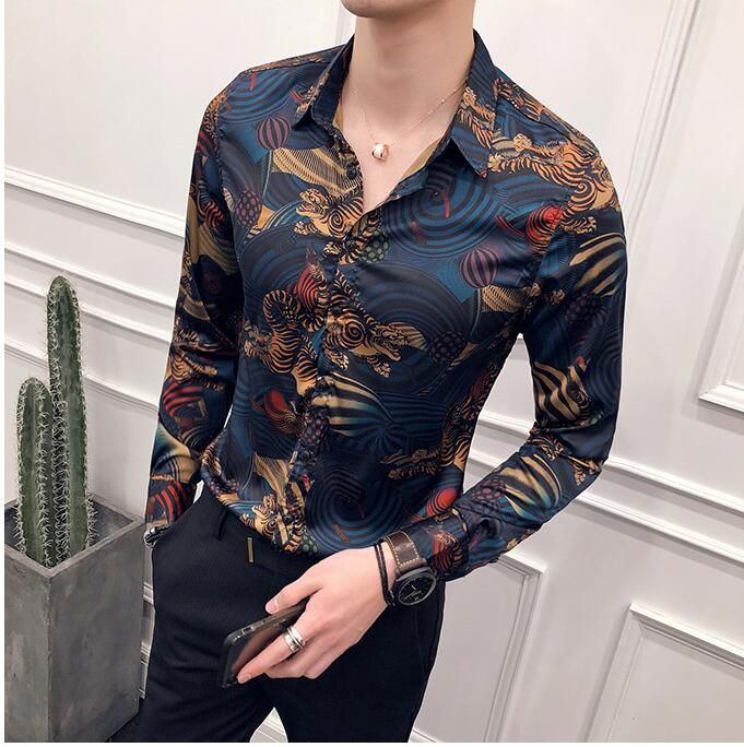 Men Shirt Slim Fit Fashion Animal Printed Mens Dress Shirts Camisa Social Masculina Long Sleeve Shirt Men Clothes From Yl8866w1861 55 15 Dhgate Com